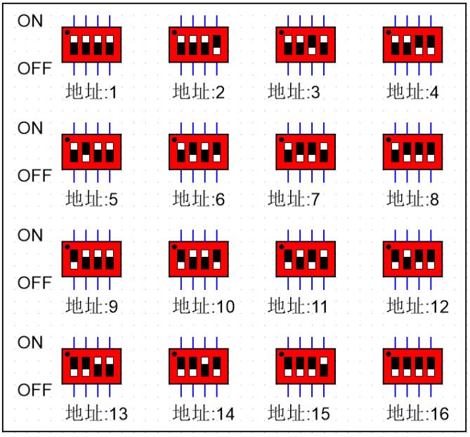 MODBUS 地址为板载拨码开关 S1,用户可根据实际情况选择,